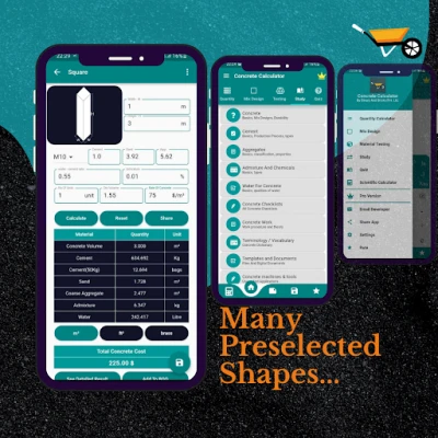 • Comprehensive Calculations: From quantity estimation to mix design, our app covers all facets of concrete calculation.