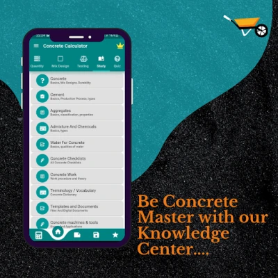 • Knowledge Hub: Enhance your expertise with study materials on concrete, cement, aggregates, and a dedicated quiz section to test your knowledge.