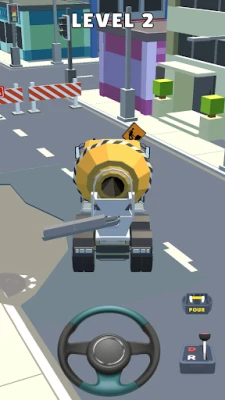 Drive your cement mixer truck through the city and pour concrete in potholes to fix them. Avoid hitting the pedestrians.