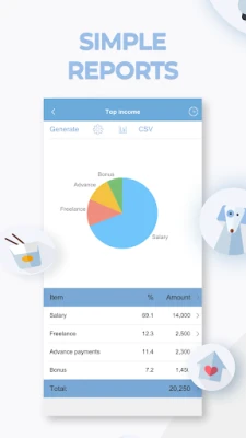 View everything directly on your phone Choose from over 10 types of reports and charts to better comprehend where money is coming in from and how it is being spent.