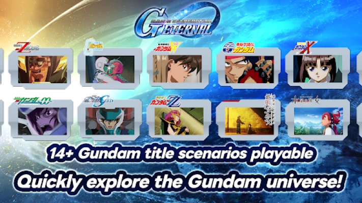 In the Main Stage, you can immerse yourself in the stories from various Gundam titles. 13 Gundam titles’ scenarios are playable, including the original "Mobile Suit Gundam", "Mobile Suit Z Gundam: A New Translation", "Mobile Suit Gundam ZZ", "Mobile Fighter G Gundam", "Mobile Suit Gundam W", "Mobile Suit Gundam SEED", "Mobile Suit Gundam 00", "Mobile Suit Gundam IRON-BLOODED ORPHANS", "Mobile Suit Gundam: The Witch from Mercury", "Mobile Suit Gundam SEED Recollection", "Mobile Suit Gundam SEED Destiny", "Mobile Suit Gundam: Char's Counterattack".