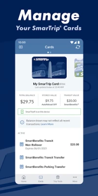 - Install this optional SmarTrip app to register your card for account balance protection, check SmartBenefits, setup Auto-Reload, or buy money-saving unlimited transit passes.